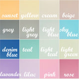 Unicorn set is teal, lavender and cream.